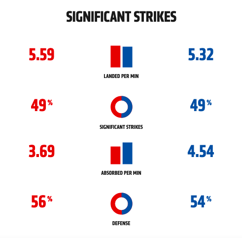 Looking at the recent UFC fight stats for UFC 264. Poirier and McGregor are surprisingly evenly matched in multiple areas of striking. Conor McGregor’s defense has dipped significantly from his last fight, he was primarily overextending himself leaving his defense wide open. Poirier also tends to land more significant strikes per minute, something McGregor will need to stick and move more in this third fight.